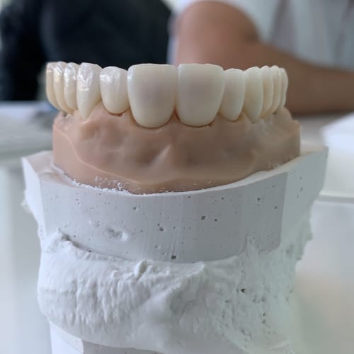 In unserer Praxis bevorzugen wir Zahnersatz aus Keramik. Abgesehen von der Ästhetik, die die natürlichen Zähne im Aussehen und der Lichtdurchlässigkeit perfekt nachahmt, ist Zahnersatz aus Keramik auch für seine gute Verträglichkeit bekannt. Keramik ist zahnfleischfreundlich, beugt der Entstehung neuer Zahnschäden vor und kann in der Zahnfarbe eingefärbt werden.